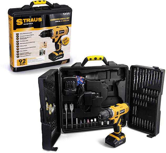 Straus 92 részes fúrókészlet ST/CDD24092 92 részes akkus fúró készlet kiegészítőkkel egy praktikus kofferban, hogy minden kéznél legyen. Ezzel a praktikus eszközzel és kiegészítőivel bármilyen szerelési vagy barkács munkálatot könnyedén elvégezhetsz. 16 fokozatban állítható nyomaték szabályzóval és irányváltóval ellátva, hogy mindig a körülményekhez igazíthasd a gépet. Gyorstokmányának köszönhetően másodpercek alatt cserélhetőek a fúró - és bitfejek. A praktikus koffernek köszönhetően a tárolás és a szállítás is igazán egyszerű. Kiváló minőség, hosszú élettertam.