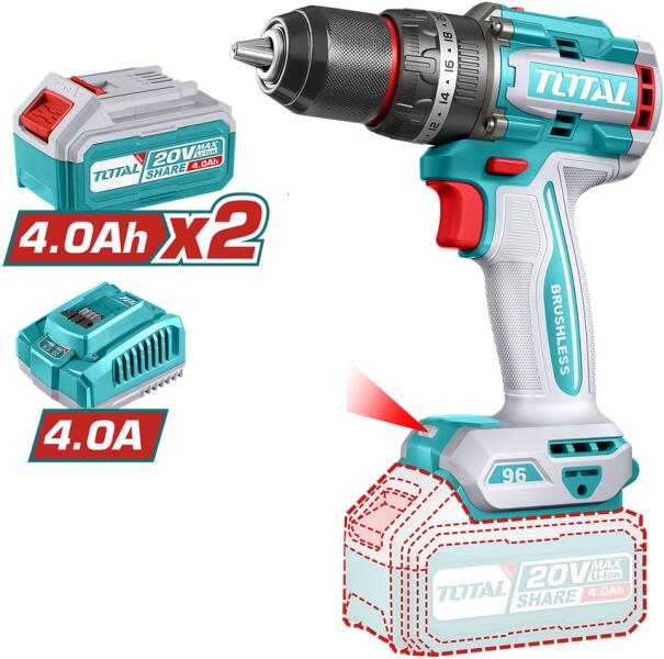 Total Tools TOTAL Fúró-csavarozógép kefe nélküli - 2x4Ah 2000prn/96Nn/P20S/ koffer+töltő (TIDLI20968E)