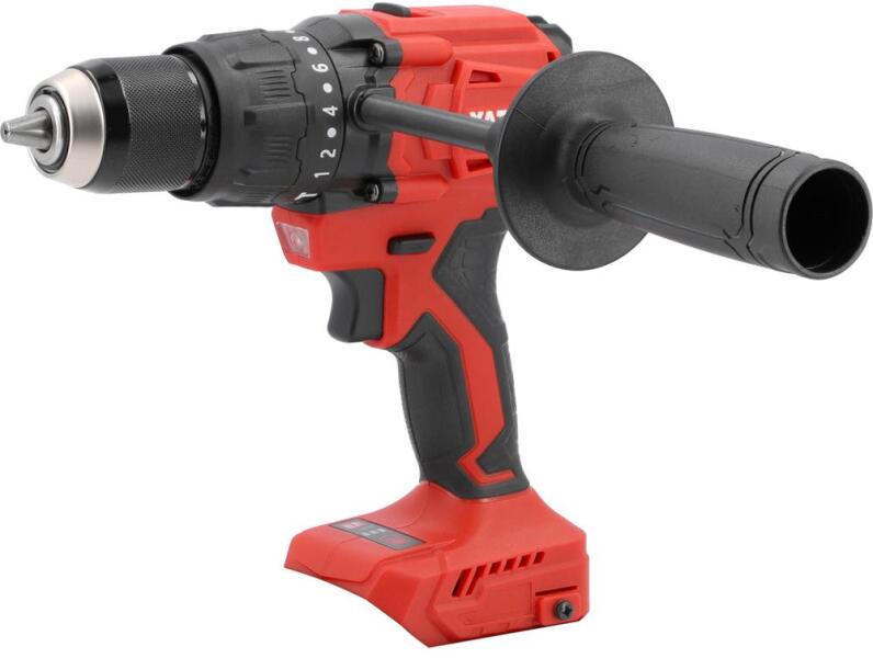 Erőteljes, de könnyű fúró/csavarozó ütőfunkcióvalTökéletesen működik csigafúrókkal, kőzetfúrókkal és még koronafúrókkal isAz oldalsó fogantyú, amely a testbe van csavarozva, megkönnyíti a szerszám szilárd fogását és erős nyomást, nagyon hasznos lépcsős fúrók használatakorA fogaskerék körüli gyűrű a szerszám munkanyomatékának beállítására szolgálA fúrásopcióval akár 16 mm-es kőzetfúróval dolgozhatunk téglában és kemény betonbanFém fúrása 20 mm átmérőjű spirálfúrókkal és 38 mm átmérőjű karácsonyfa fúrókkal lehetséges. Technikai adatokAkkumulátor kapacitás (Ah)Akkumulátor nélkül szállítvaAkkumulátorral együtt (db)0Feszültség (V)18Üresjárati fordulatszám (f/p)0-8500 / 0-29750Ütésszám (ütés/perc) 0-8500 / 0-29750Forgatónyomaték (Nm)120Tokmány mérete (mm)13Max. furatátmérő fa / fém25 / 20Súly akkumulátorral (kg)1,3